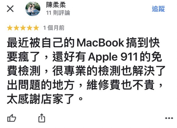 ★★★★★ BY 陳柔柔-台北MacBook維修-換電池、換螢幕、換鍵盤、修主機板